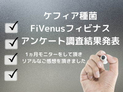 昨年の12月より、ケフィアヨーグルト種菌"FiVenusフィビナス"のモニター募集を行いました。約1ヵ月間FiVenusフィビナスを使っていただき、作り方や味、使用感などアンケートを実施させて頂きました。ご購入の検討をされている方は是非、消費者の生の声を参考になさってください。また、モニター参加者様のブログでもFiVenusフィビナスをご紹介頂いております。そちらのご感想も掲載させて頂きましたので、併せてご覧頂ければ幸いです。アンケート結果はコチラから